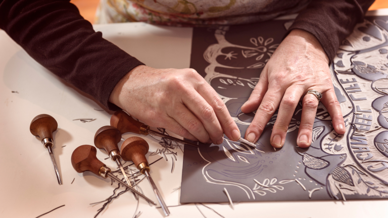 Este taller explora la relación entre arte y matemáticas a partir de la obra de M. C. Escher. Los participantes diseñarán teselados inspirados en sus composiciones y los transformarán en grabados mediante la técnica del linograbado. Al finalizar, cada participante producirá una pequeña serie de estampas originales.